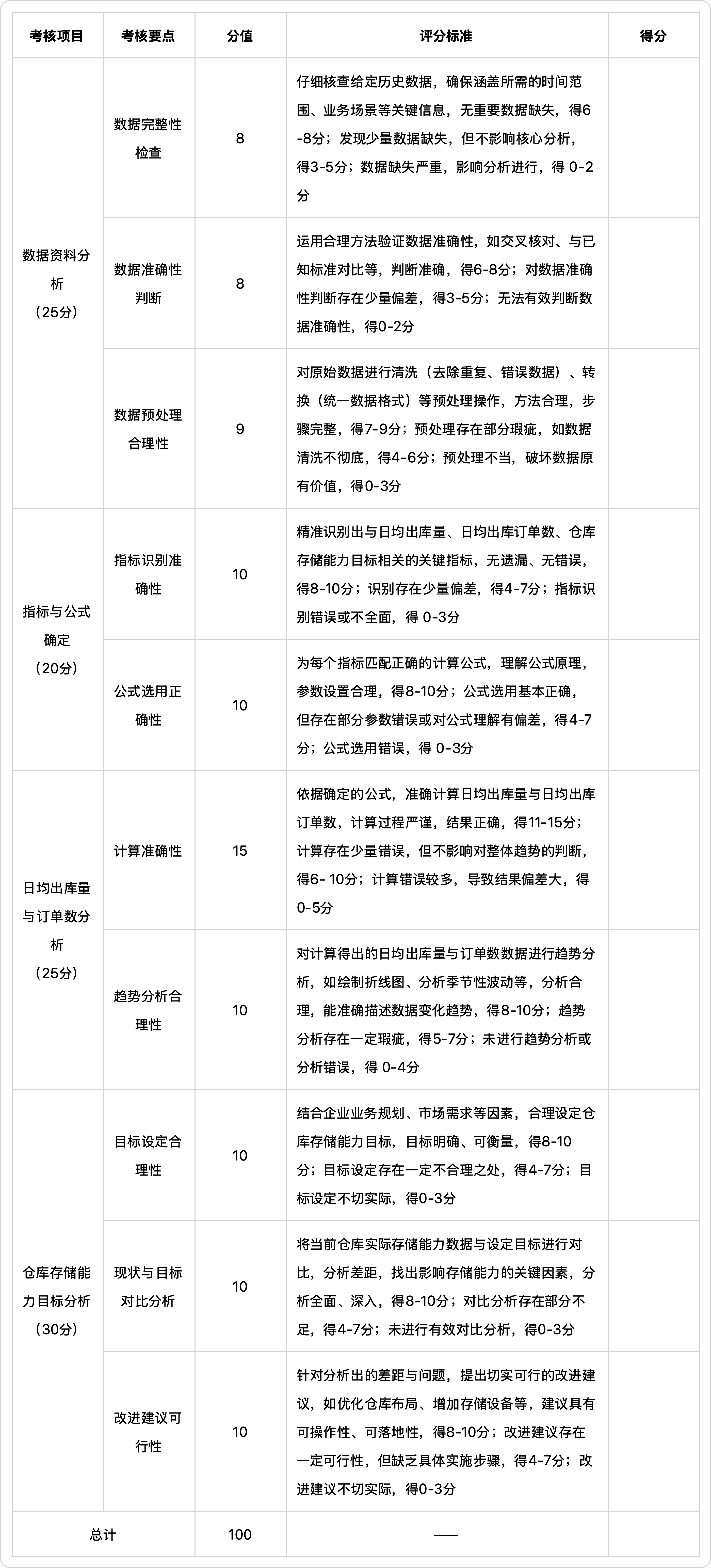 4.完成仓库存储能力目标分析。